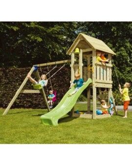 El Parque Infantil Torre Kiosk de la marca Masgames es una sólida y atractiva torre de madera cuadrada diseñada para enriquecer tu jardín. Este parque infantil consiste en una casita de madera elevada, accesible a través de una escalera, con una emocionante rampa de tobogán para el descenso. Además, en su base, puedes colocar arena para el juego.